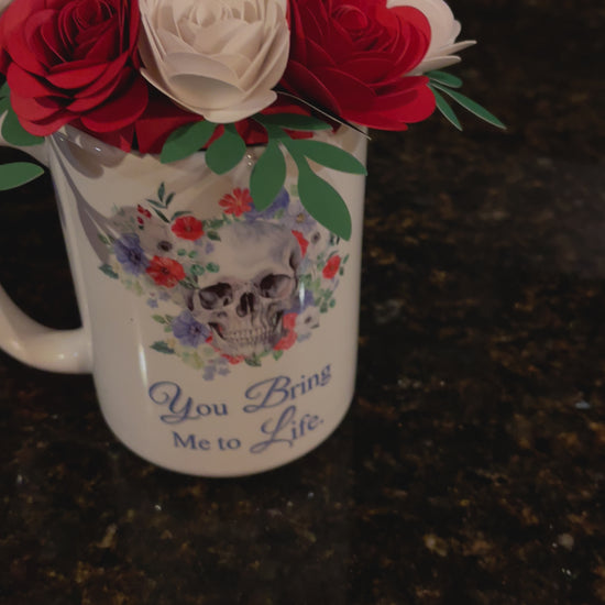 Coffee mugs are made using sublimation which creates a smooth, glossy, and PERMANENT finish. The design will not chip, crack, or peel over time like vinyl does.